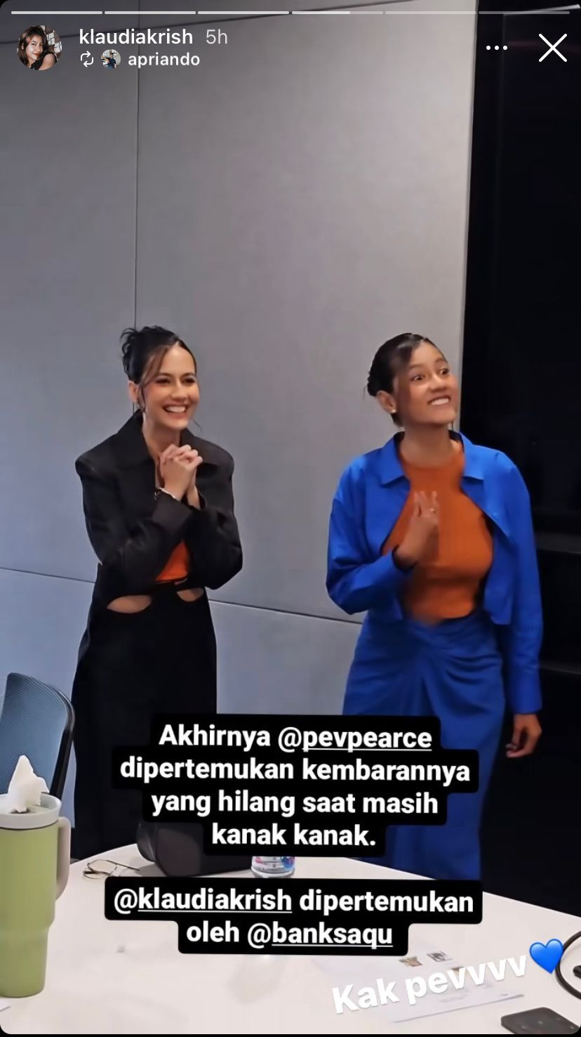 Harapan netizen terwujud, Klaudia Krish terlihat bertemu dengan Pevita Pearce dalam sebuah ruangan.