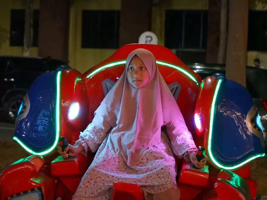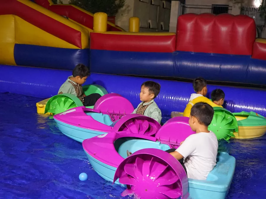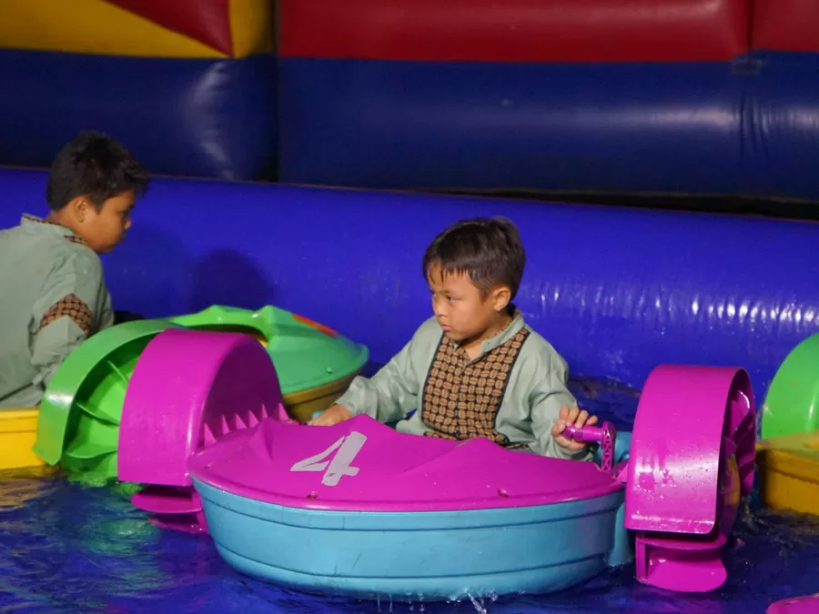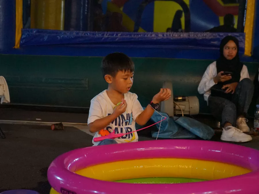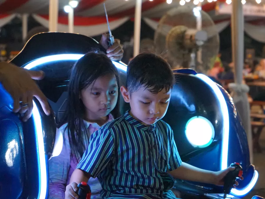 Beberapa anak berlari-larian dan dengan semangat kembali mencoba mengatasi tantangan setiap wahana yang berhasil mereka taklukkan.