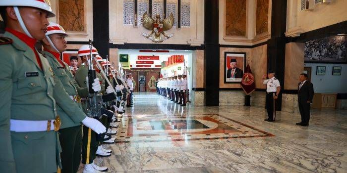 Kedatangan Jenderal Bryan P Fenton disambut dengan upacara kehormatan oleh Wakil Menteri Pertahanan RI, M. Herindra, yang diikuti dengan pengantaran menuju ruang pertemuan.