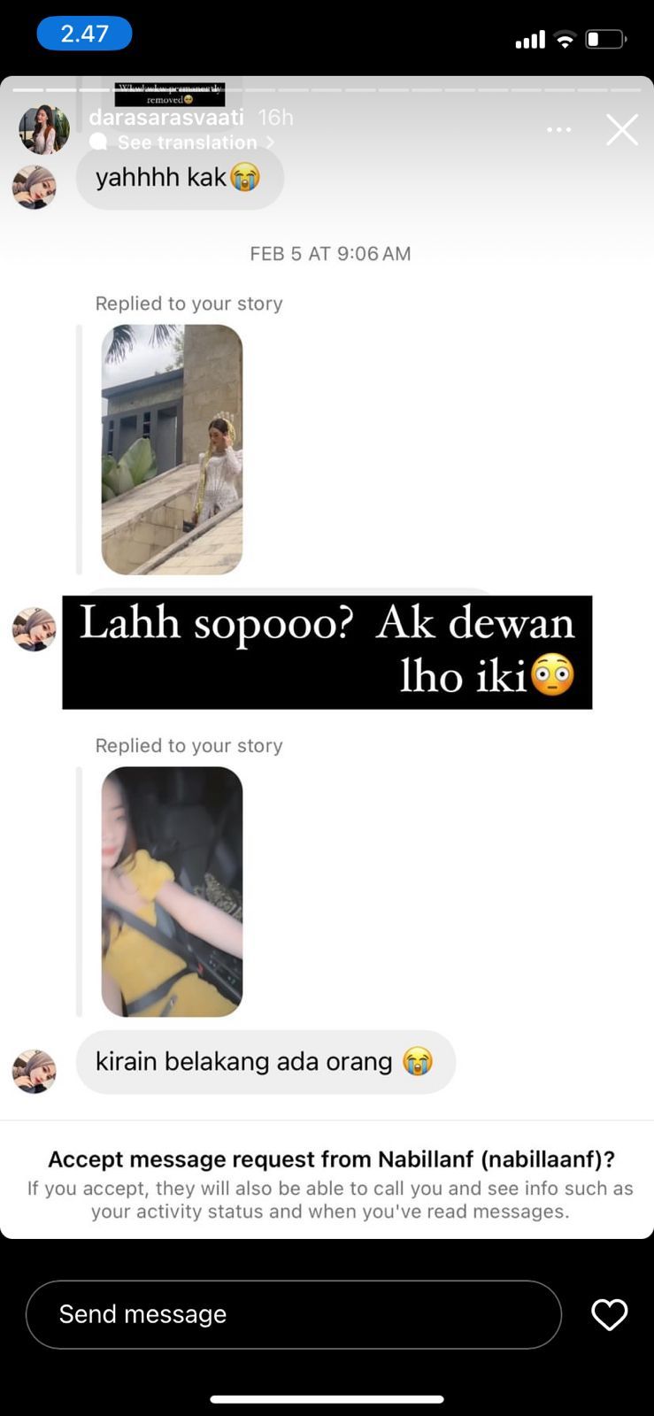 Kisah berawal sewaktu Dara membuat story di instagramnya saat ia mengemudikan mobil.