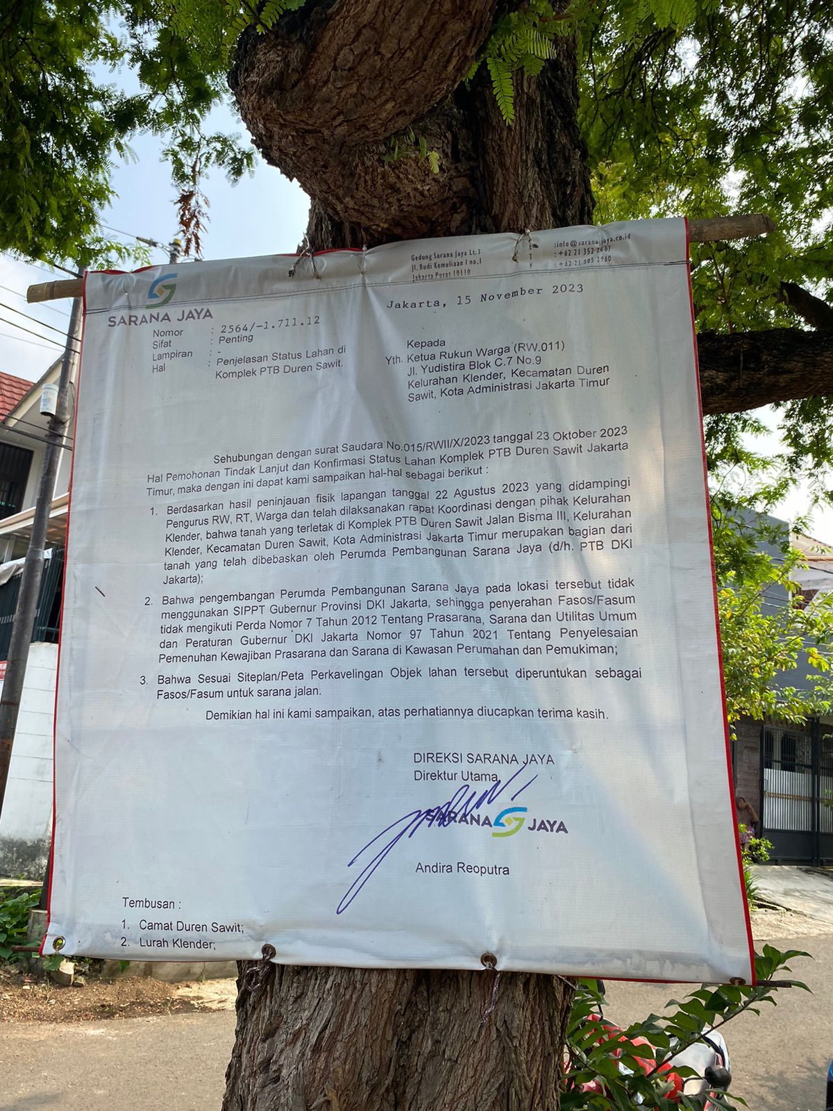 Masyarakat Klender Bersatu Lawan Mafia Tanah, Plang Perlawanan Di Taman PKK RW 011 Terpasang