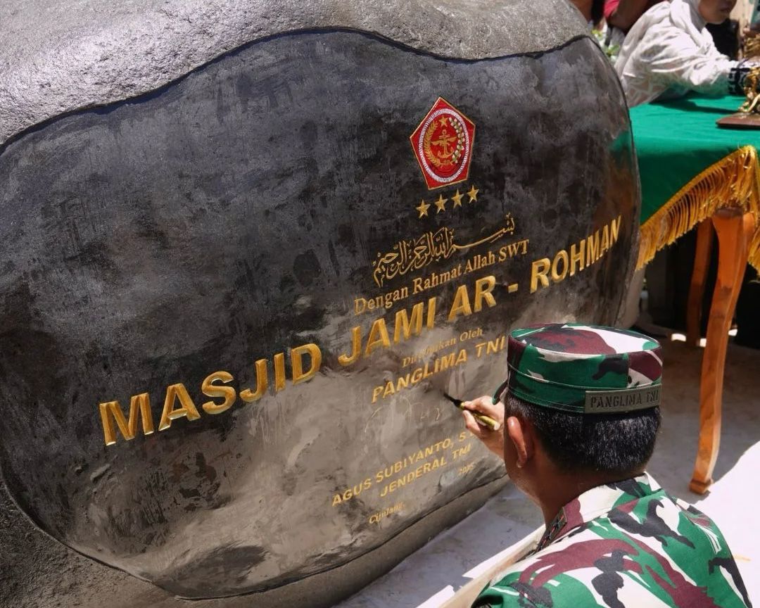 Panglima TNI Jenderal TNI Agus Subiyanto didampingi Ketua Umum (Ketum) Dharma Pertiwi Ny. Evi Agus Subiyanto saat meresmikan Masjid Jami Ar-Rohman yang menghadirkan penceramah Ustadz Adi Hidayat.