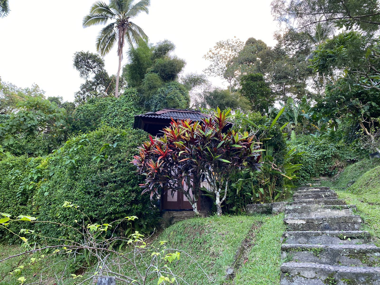 Jalan menuju kolam air panas privat di bagian atas kolam umum air dingin, Espa Yeh Panes Penatahan. (Pande / Rinus Muntu)